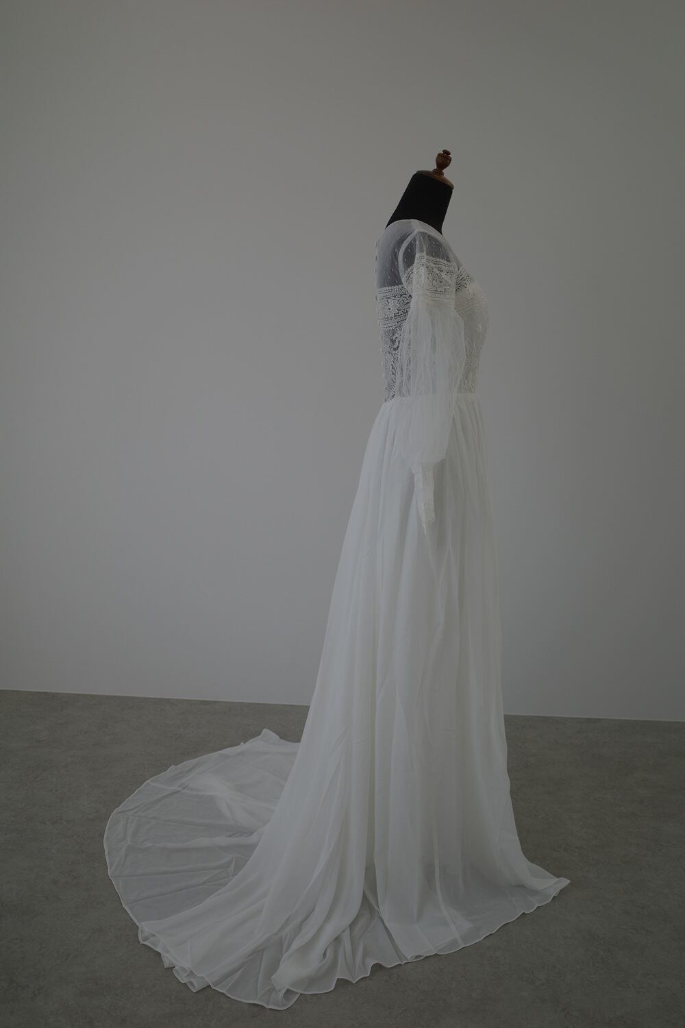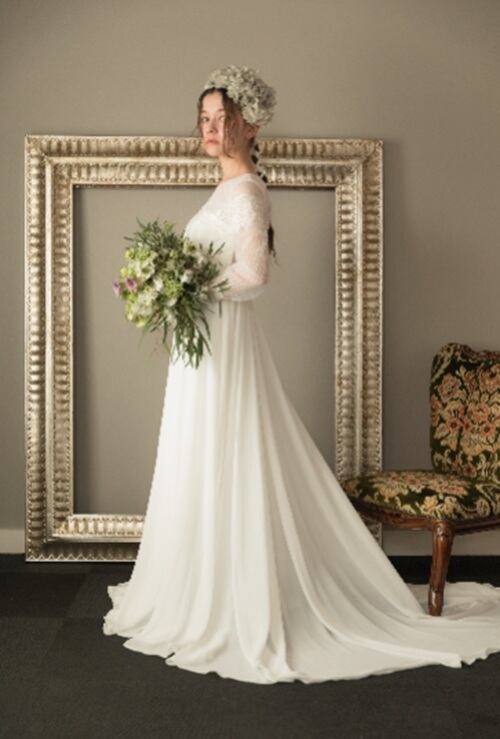 長袖のナチュラルなシフォンドレスです。