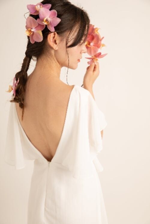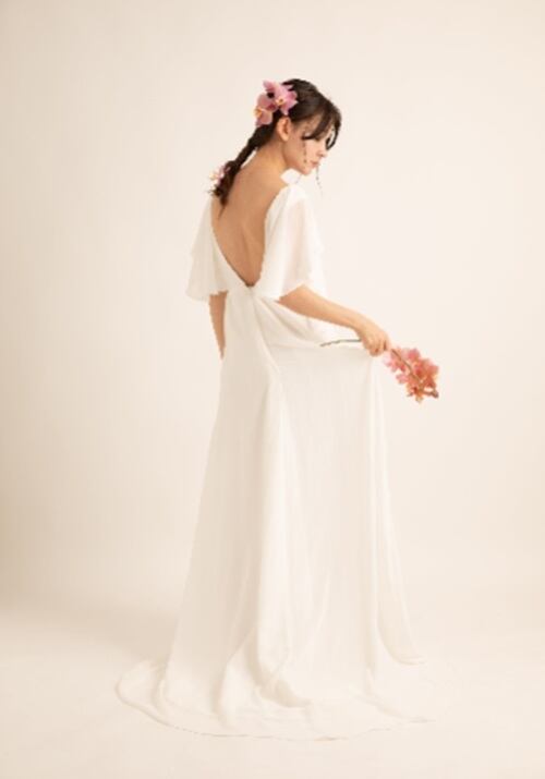 Sample Sale バックV フレア袖 シフォン ウエディングドレス(W65)【G258】