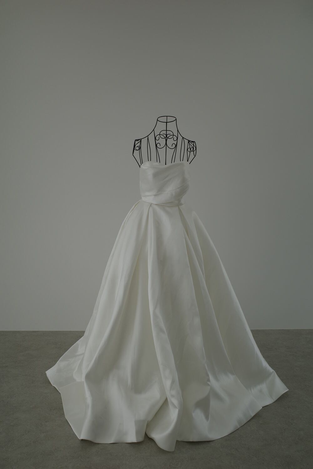 ミカド風の重厚感のあるサテン生地を使用したドレス。