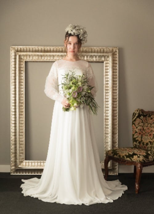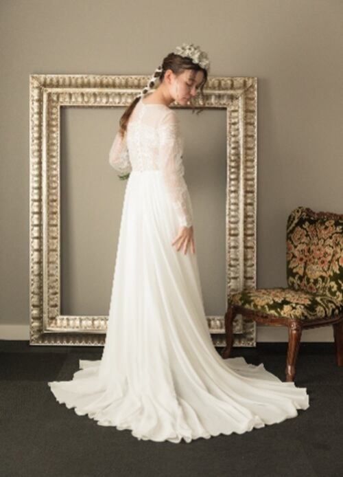 長袖のナチュラルなシフォンドレスです。