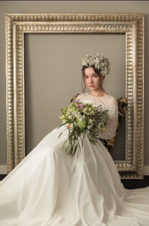 異素材のレースを組み合わせ、ナチュラルでクラシカルな印象に仕上げました。