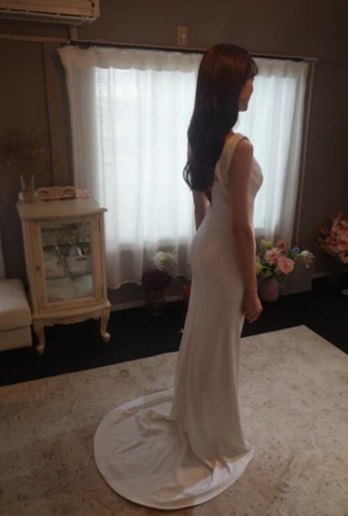 Sample Sale Sサイズ・サテン シンプル ボートネック マーメイド ウエディングドレス(W113)【G304】
