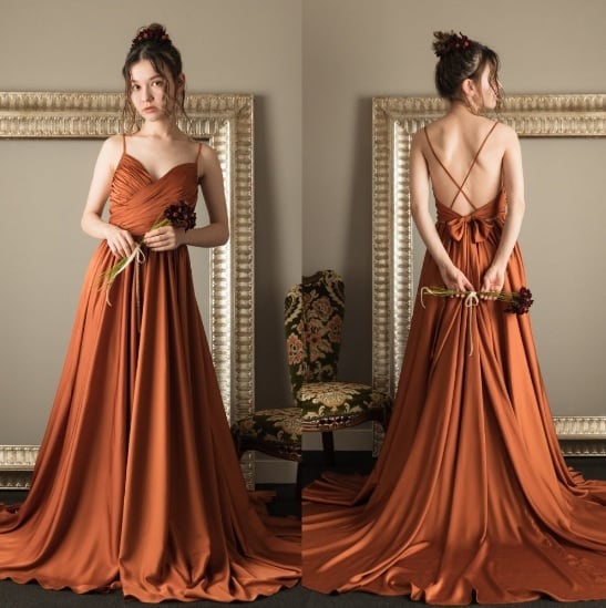 落ち着いた深みのあるテラコッタカラーが上品なドレス。