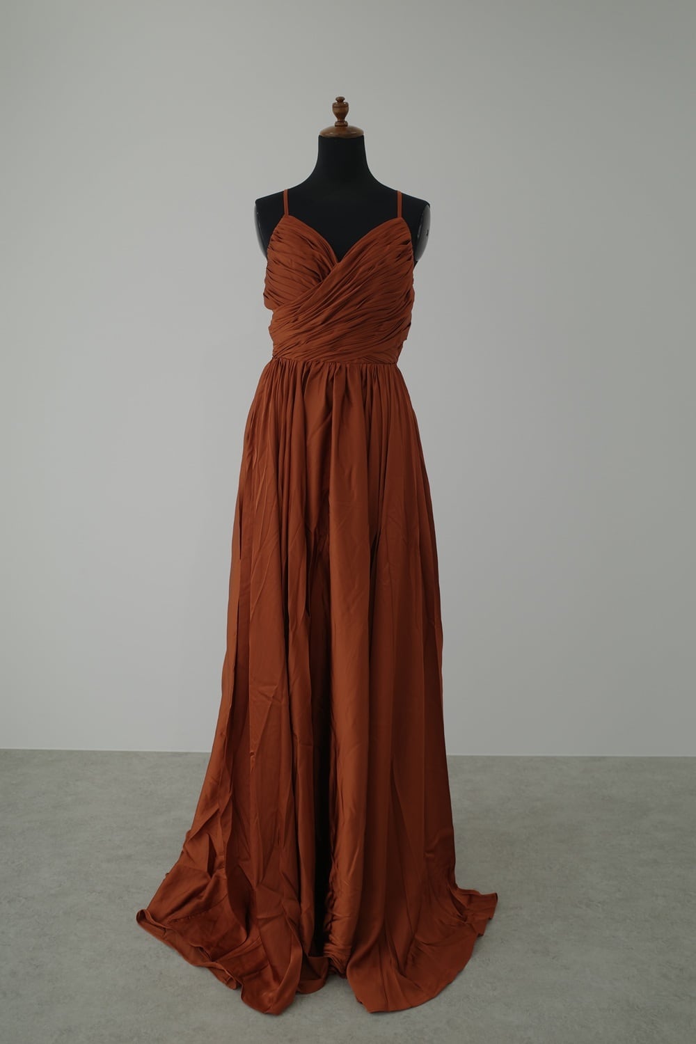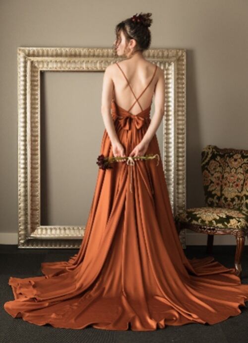 落ち着いた深みのあるテラコッタカラーが上品なドレス。
