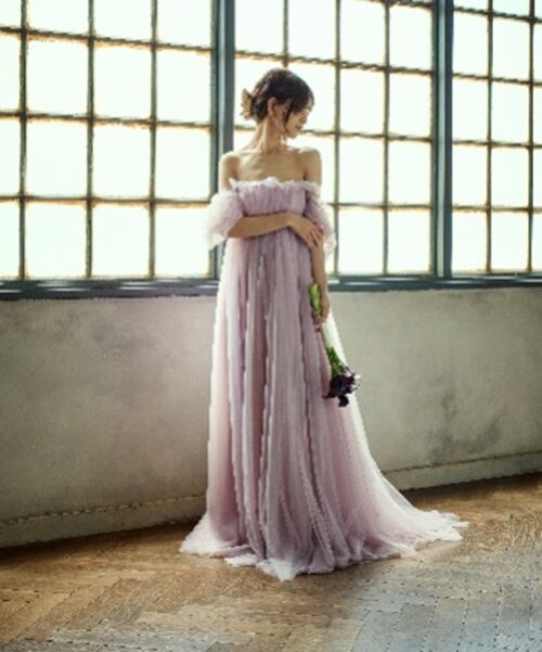 ふんわりとしたチュール生地がガーリーなドレス。
