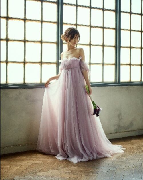 Sample Sale Sサイズ・エンパイアライン チュールドレス(W283PU)マタニティ可【G291】