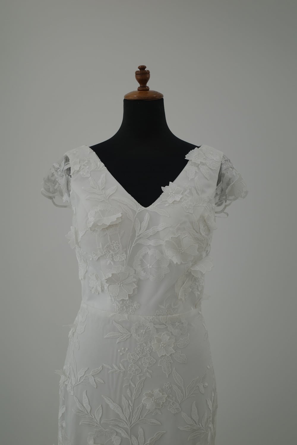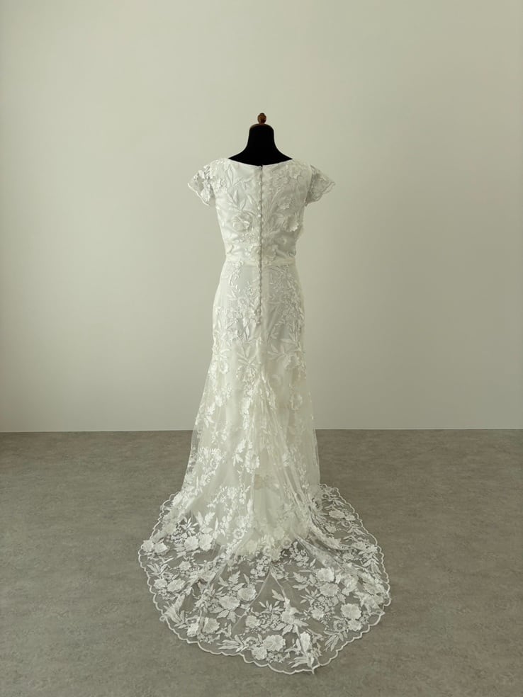 立体的なお花モチーフのレースが大人可愛いソフトマーメイドドレス。