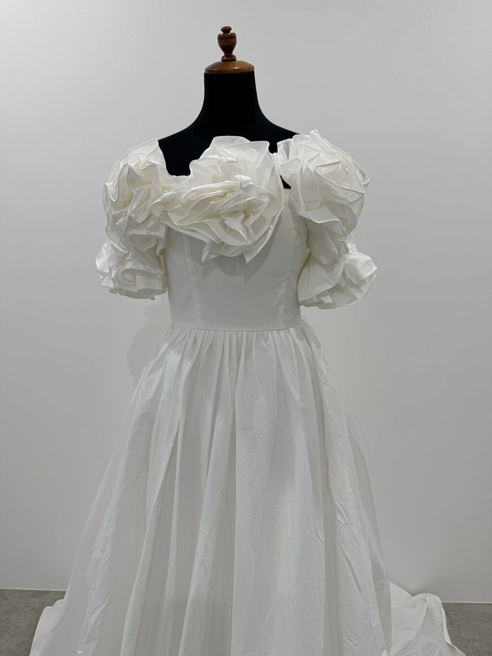 Sample Sale Mサイズ・フリルショルダー タフタドレス ホワイト(W266WH)【G320】