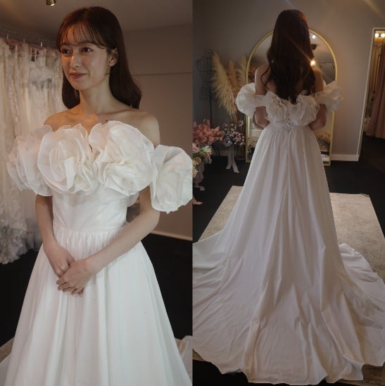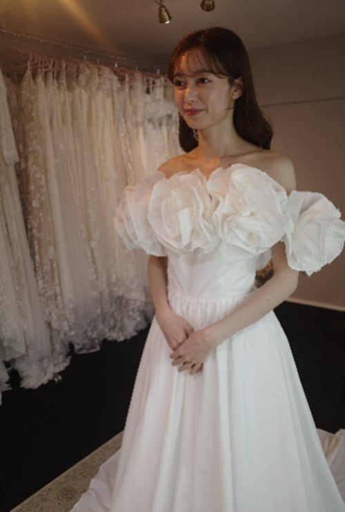Sample Sale Lサイズ・フリルショルダー タフタドレス ホワイト(W266WH)【G322】