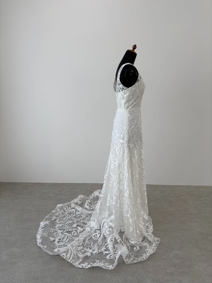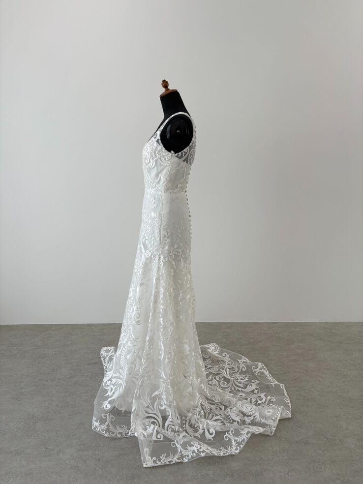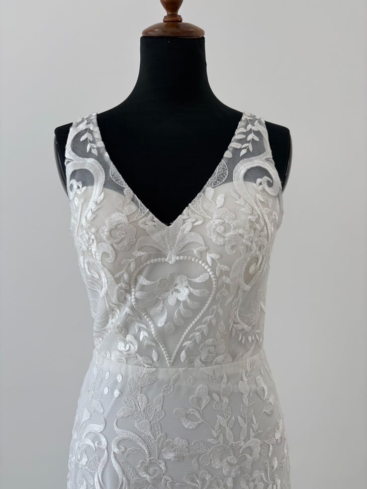Sample Sale Mサイズ・総レース Vネック Aラインドレス(W165)【G326】