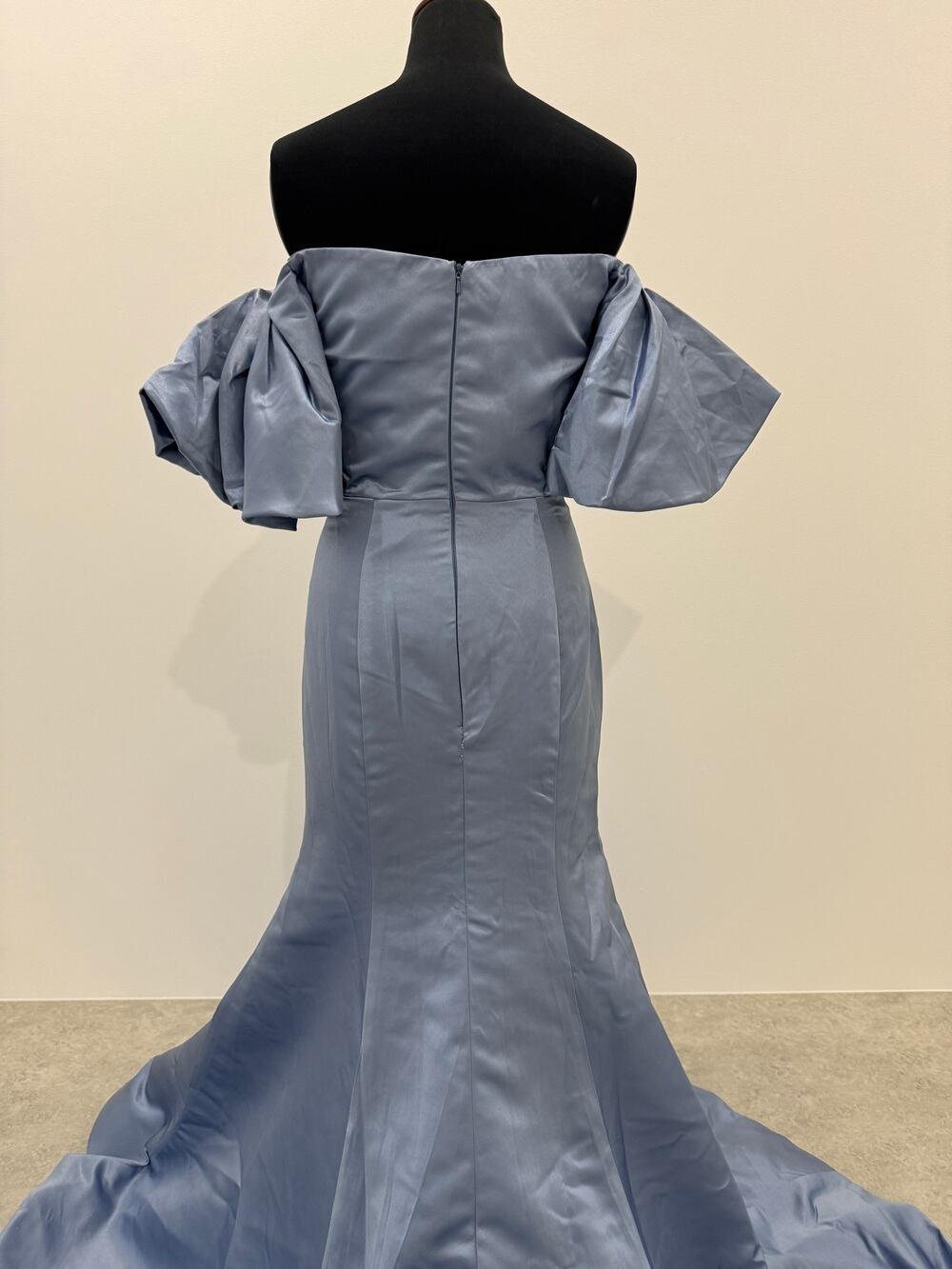 Sample Sale Sサイズ・オフショルダー ボリューム袖 ライトブルー サテンドレス(W233)【G330】
