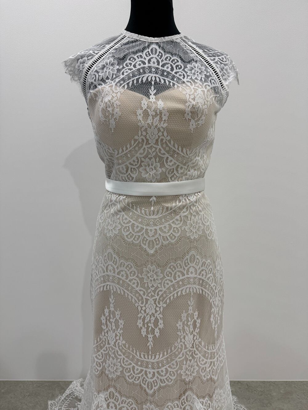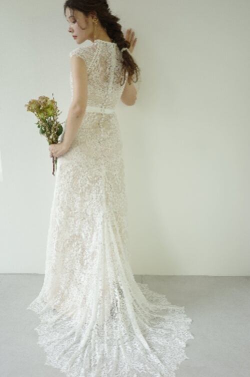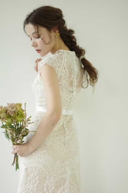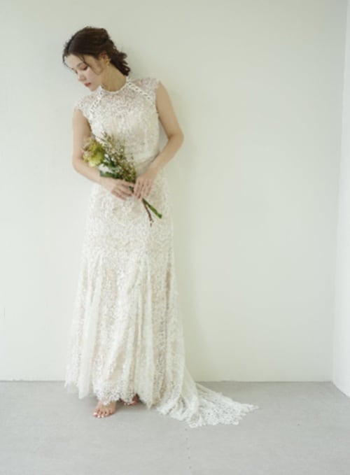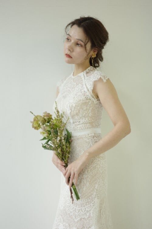 Sample Sale Sサイズ・総レース クルーネック ソフトマーメイドドレス(W201)【G337】