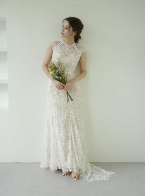 Sample Sale Lサイズ・総レース クルーネック ソフトマーメイドドレス(W201)【G339】