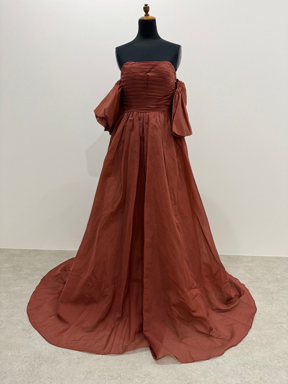 Sample Sale Mサイズ・オーガンジーサテン パフスリーブドレス ボルドー(W260BO)【G342】