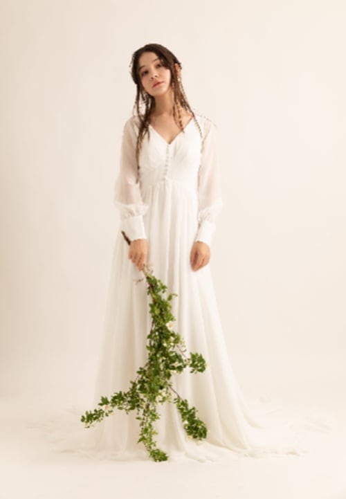 クラシカルでフェミニンなシフォンドレス。