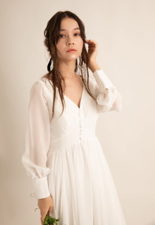 クラシカルでフェミニンなシフォンドレス。