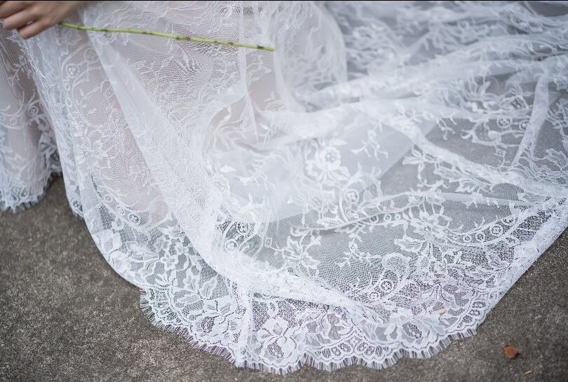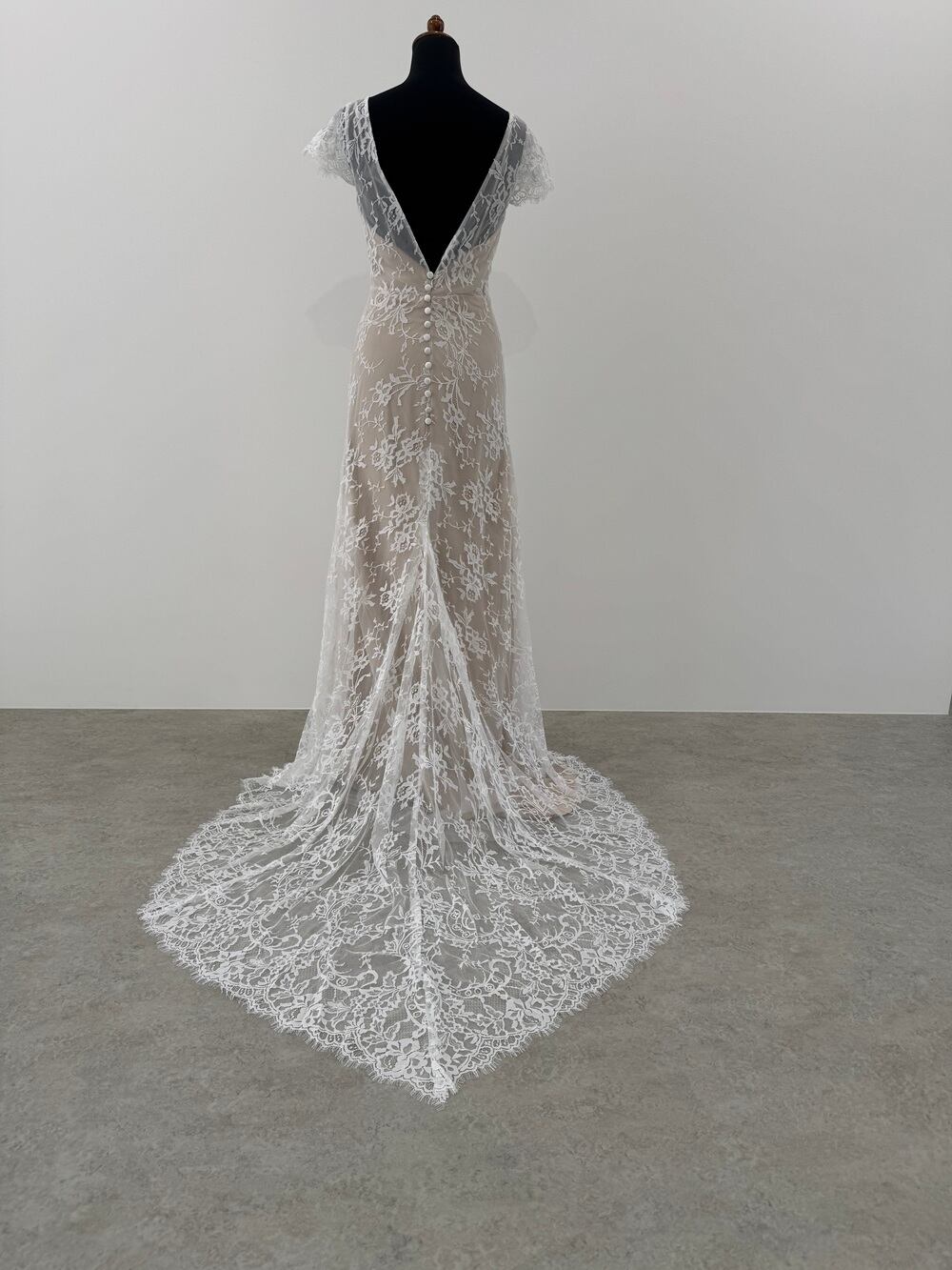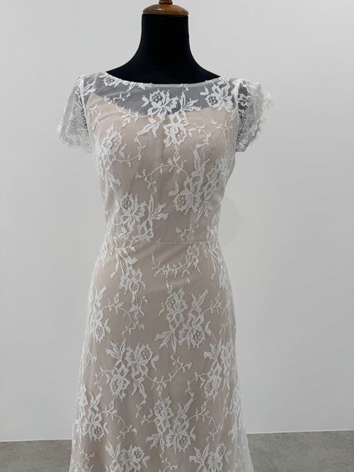 Sample Sale Sサイズ・総レース ボートネック 半袖 スレンダードレス(W222)【G359】