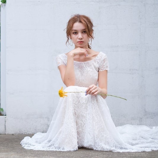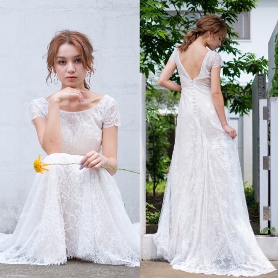 Sample Sale Sサイズ・総レース ボートネック 半袖 スレンダードレス(W222)【G360】