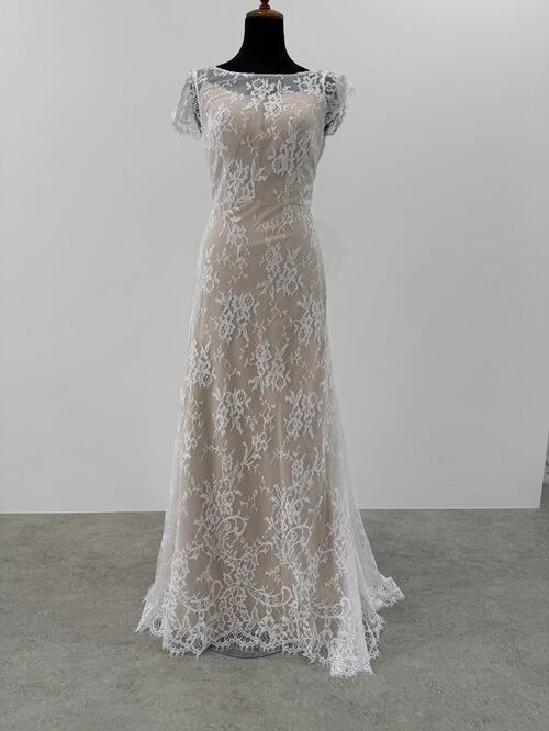 Sample Sale Lサイズ・総レース ボートネック 半袖 スレンダードレス(W222)【G361】