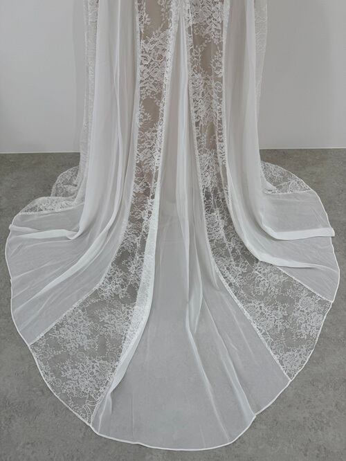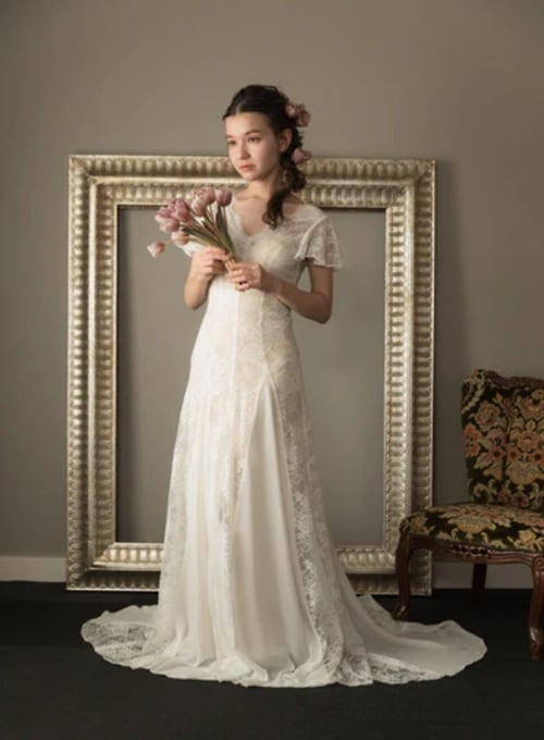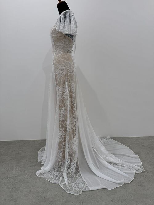 Sample Sale Lサイズ・フレアスリーブ Vネック 総レースドレス(W104)【G364】