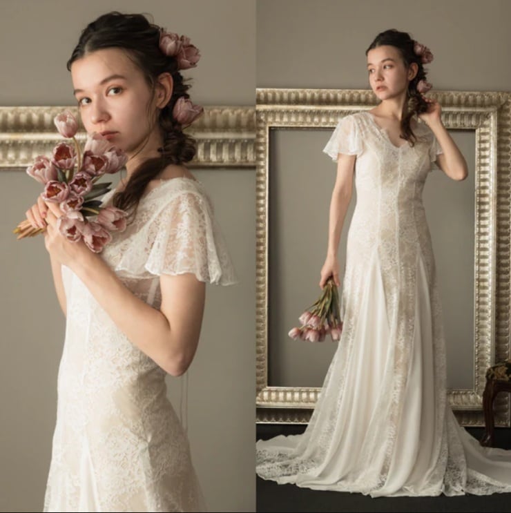 程よく体にフィットしたシルエットと、裾のフレアは大人可愛いウエディングシーンを演出してくれます。