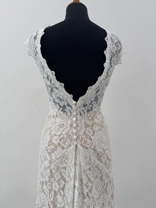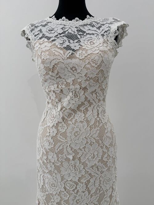 Sample Sale Lサイズ・クルーネック 花柄レース スレンダードレス(W174)【G371】
