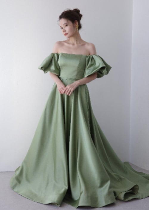 Sample Sale Sサイズ・オフショルダー ボリューム袖 サテンドレス(W220MG)【G377】