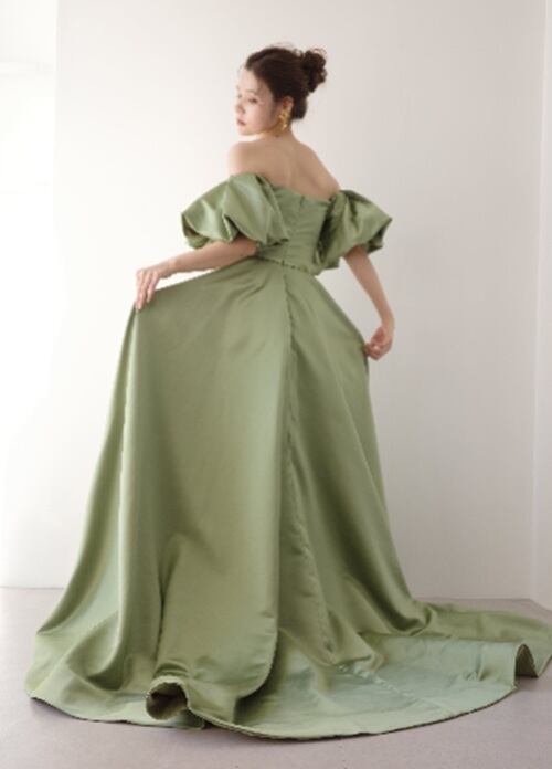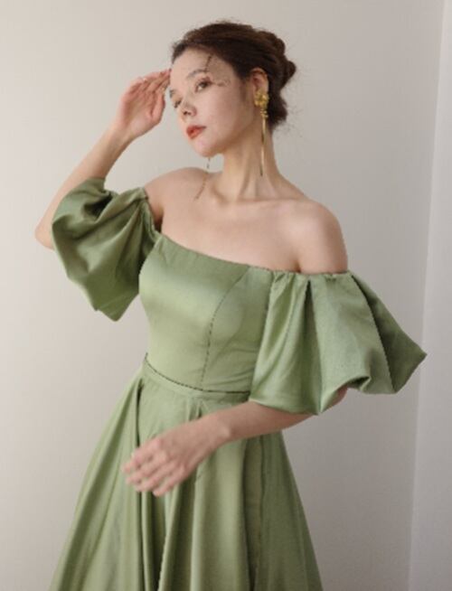 Sample Sale Mサイズ・オフショルダー ボリューム袖 サテンドレス(W220MG)【G378】