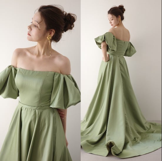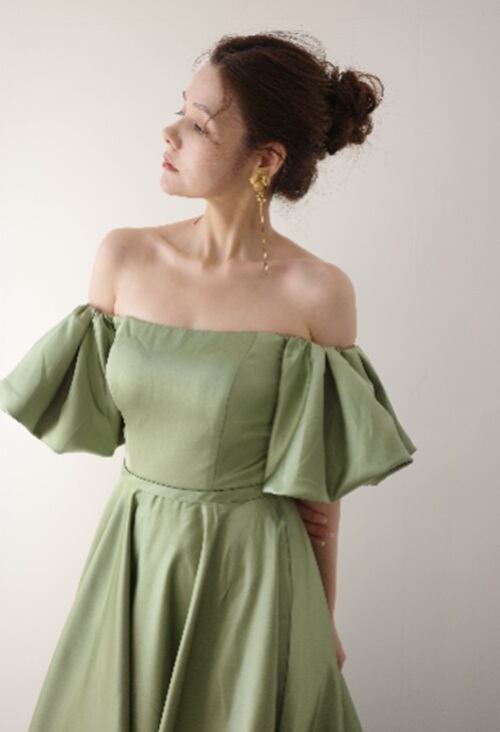 Sample Sale Lサイズ・オフショルダー ボリューム袖 サテンドレス(W220MG)【G379】