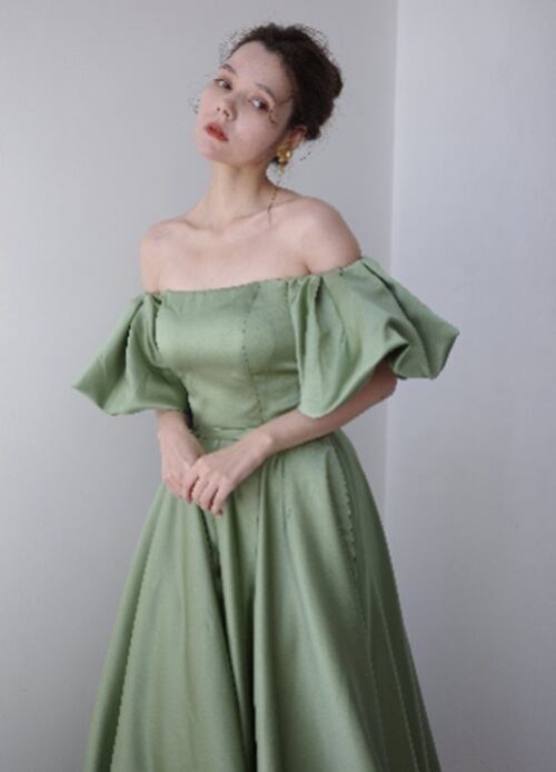 Sample Sale Sサイズ・オフショルダー ボリューム袖 サテンドレス(W220MG)【G380】