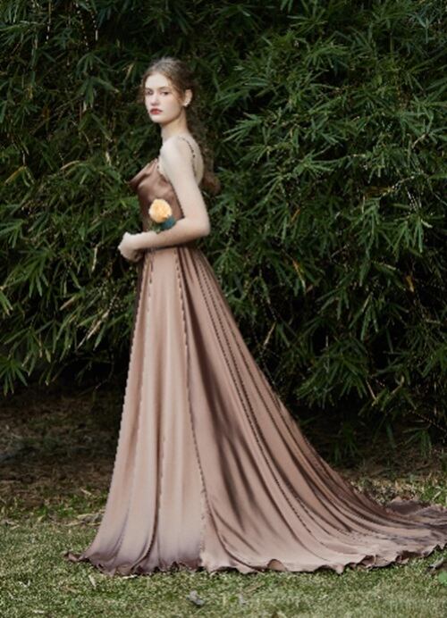 シックなお色味と艶やかな生地感がエレガントなカラードレス。