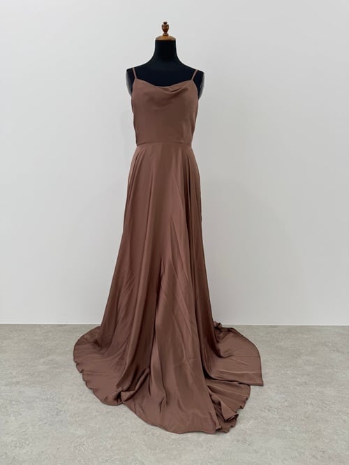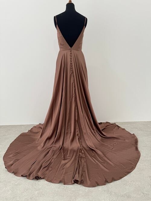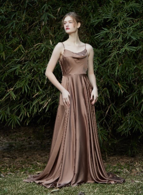 シックなお色味と艶やかな生地感がエレガントなカラードレス。