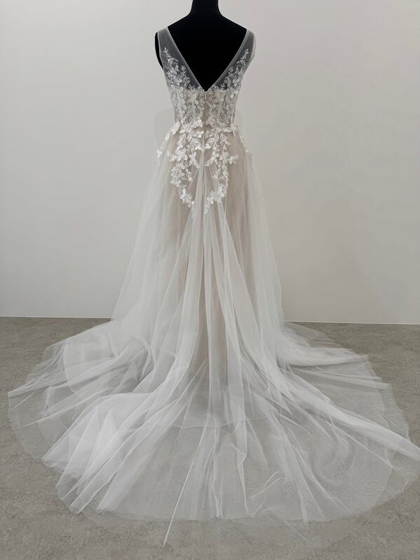 Sample Sale フラワーモチーフ 刺繍レース Aライン テールカットドレス(W162)【G398】
