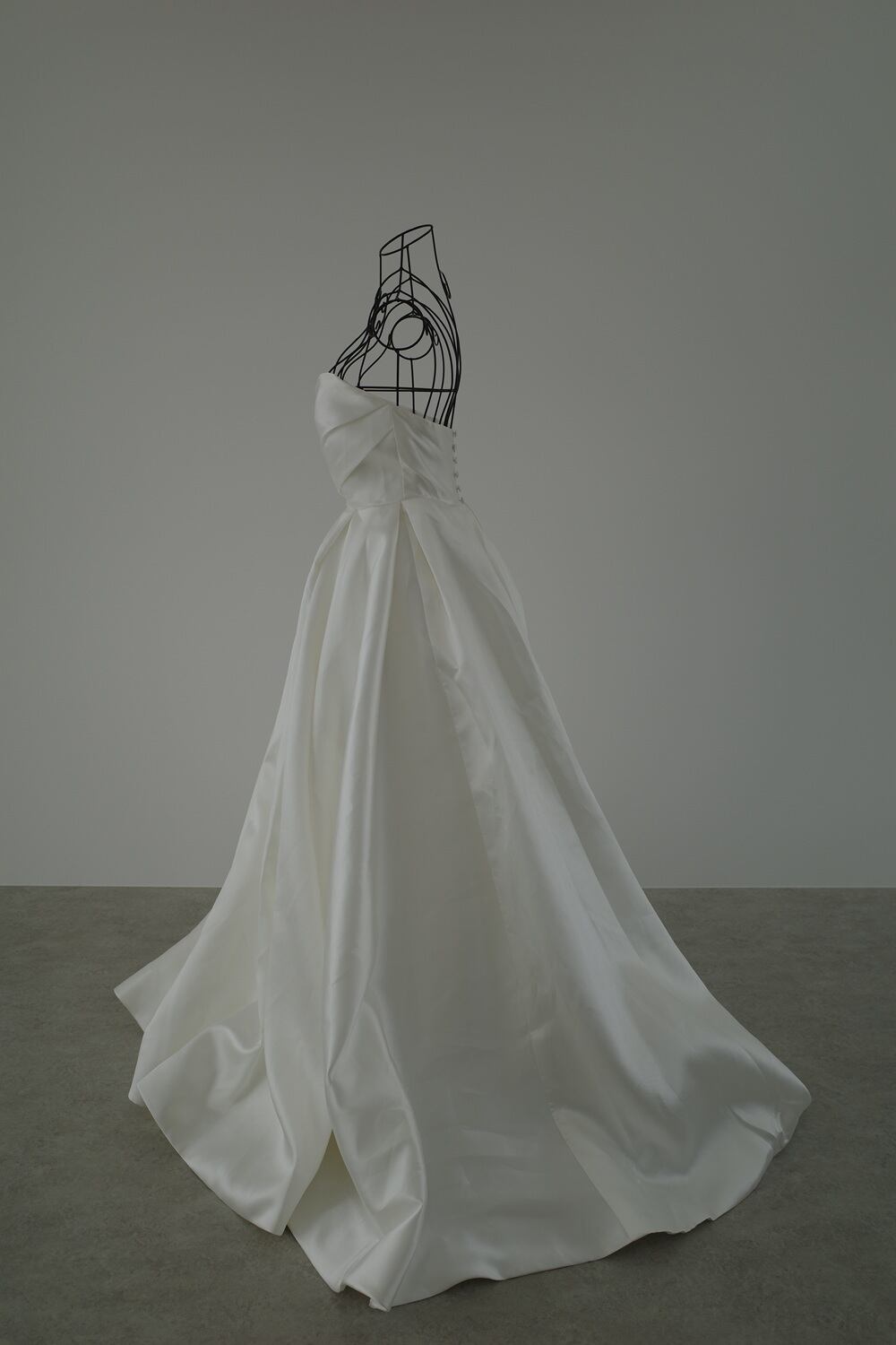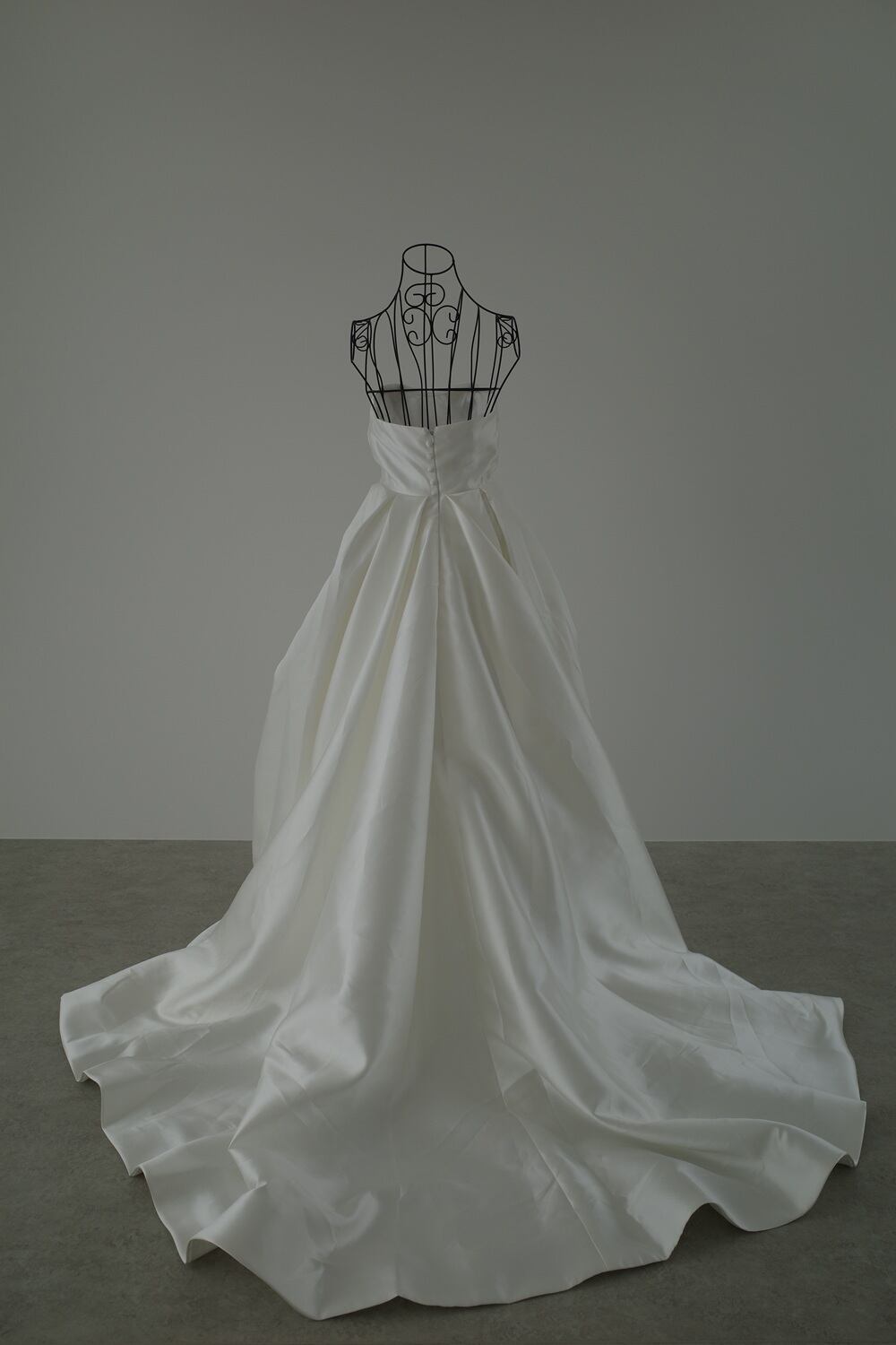 ミカド風の重厚感のあるサテン生地を使用したドレス。