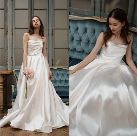 Sample Sale ミカド風サテン ベアトップドレス(W259) 【G400】
