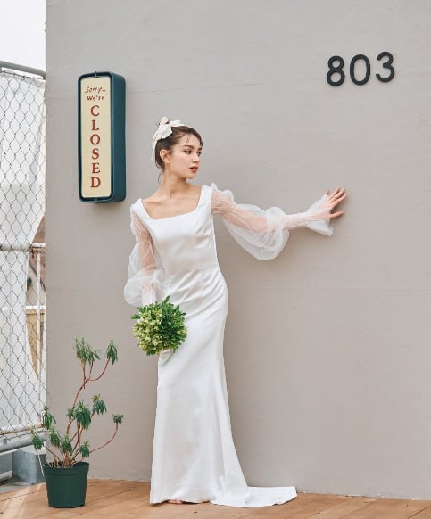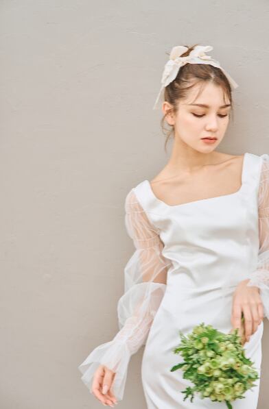透け感のあるボリューム袖と、