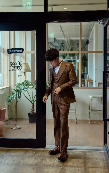 Sample Sale スリーピース メンズスーツ タキシード キャメル(M15)【G419】